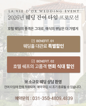 호텔 셰프가 선사하는 프리미엄 정찬, 당신의 웨딩은 평생 기억될 특별한 감동으로 완성됩니다.